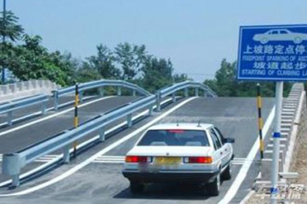 上坡时要压好离合踏板,让车速很慢的上,中途不能停车。上坡时,看边线在车头的右侧三分之一处与边线重合保持三十厘米的距离慢速前进。定点时候,还是看左边后视镜下边缘,当后视镜下边缘与停车控制线重合时候,踩刹车、踩离合停车。