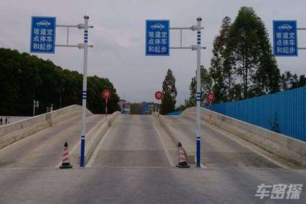 1.听到“上坡定点停车”指令后,(立刻打右转向灯),方向向场地右侧靠;(起步时如果有坡度时,为防止溜坡,要用半坡起步法起步)。