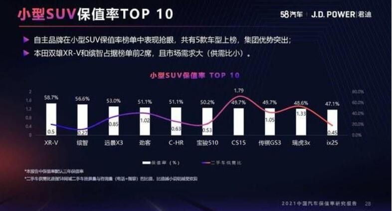 随着用户换车频率的提高,汽车保值率的重要性也愈加明显,车型的保值率与车型的综合实力成正比。据今年10月58汽车×J.D.POWER联合发布的《2021中国汽车保值率研究报告》数据显示,东风本田XR-V又获小型SUV保值率第一。这已经不是XR-V第一次获得如此殊荣,截至目前,XR-V已经连续五年获得《中国汽车保值率研究报告》小型SUV领域保值率冠军,这样的成绩在市场上少之又少。要知道高保值率不仅是产品实力的体现,更是XR-V优异市场口碑的佐证,XR-V“保值王”实至名归。