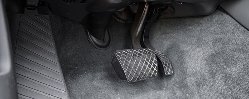汽车的油门踏板在最右边,手动档汽车比自动档汽车多了一个离合踏板。